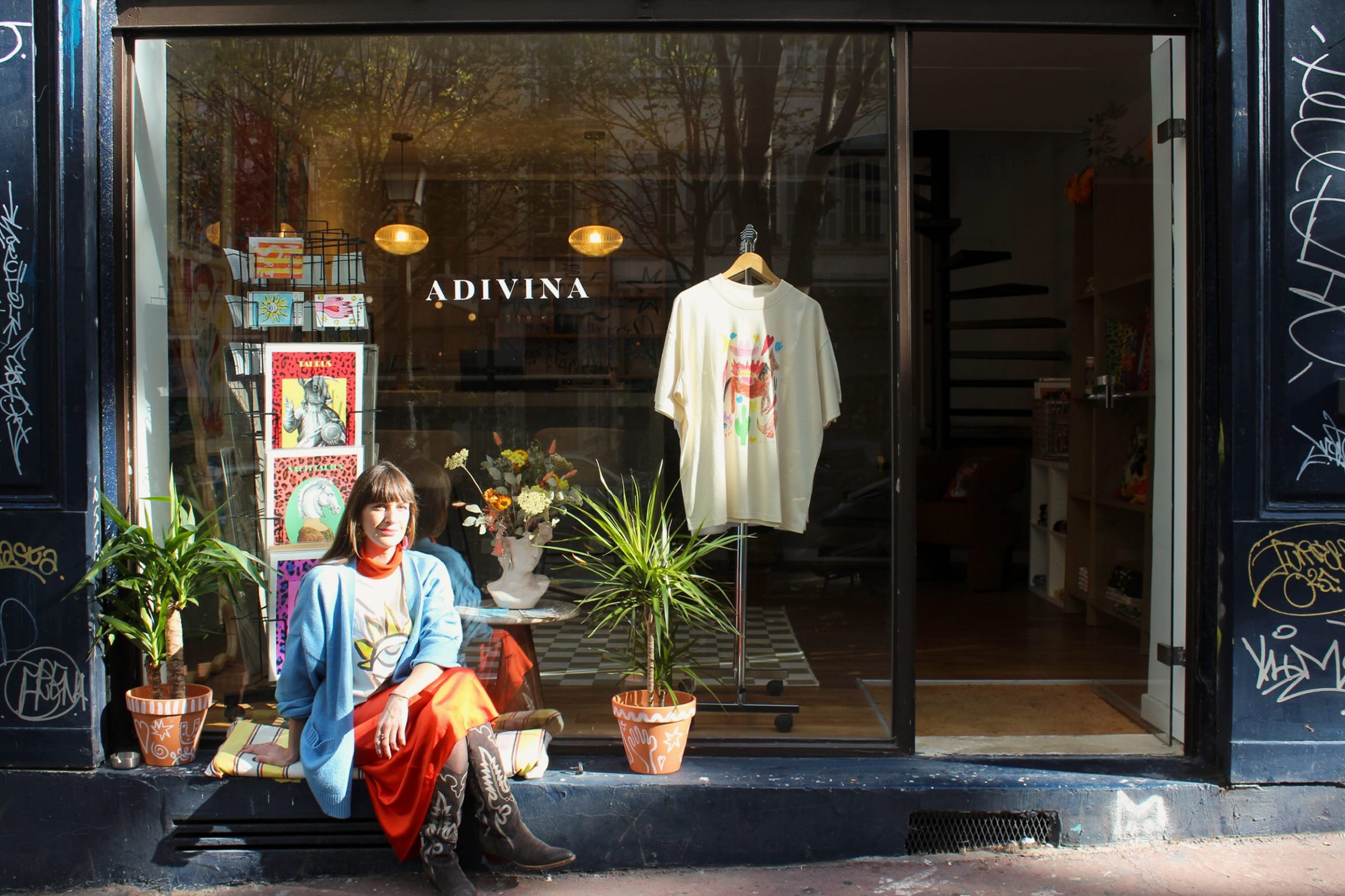 Vous l’aurez compris, Adivina puise son inspiration dans les arts divinatoires, la culture des années 1970 et la douceur du Sud, pour donner vie à des collections vibrantes où rééquilibrage des chakras et symboles ésotériques se mêlent. Tous les matins, Béa dessine (et vend) ici de petites cartes illustrées, véritables « moods du jour » poétiques. Pas surprenant pour cette artiste poisson, signe associé à la spiritualité et à l’imaginaire.