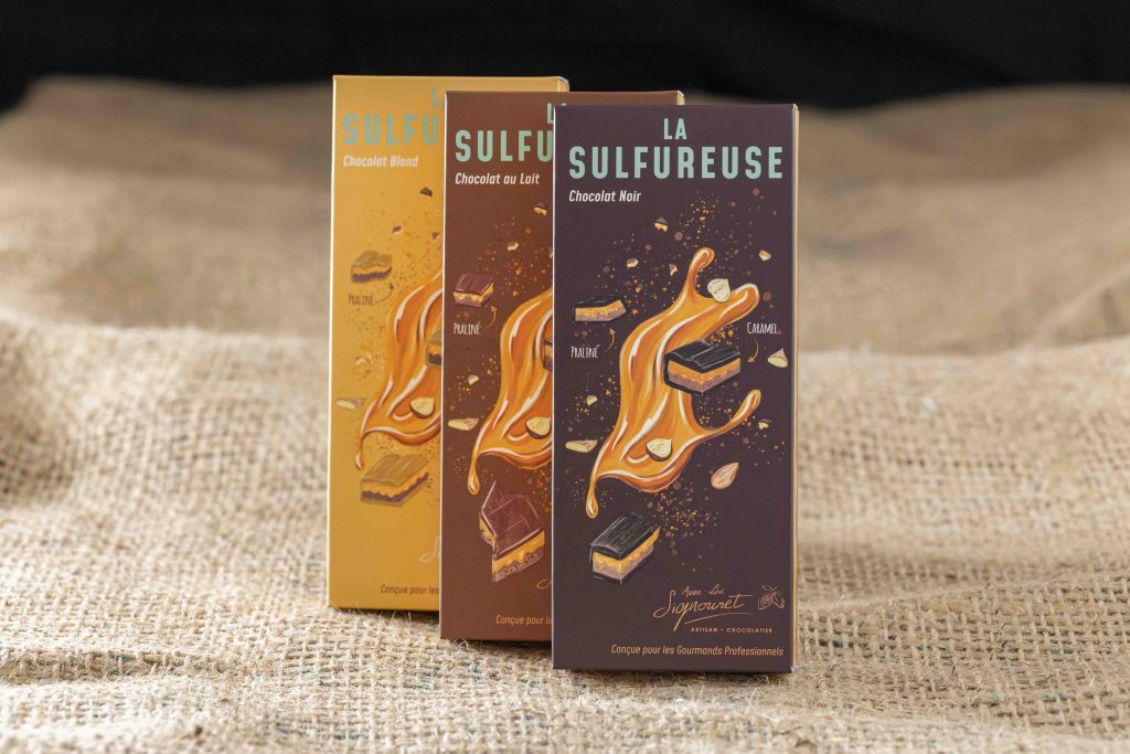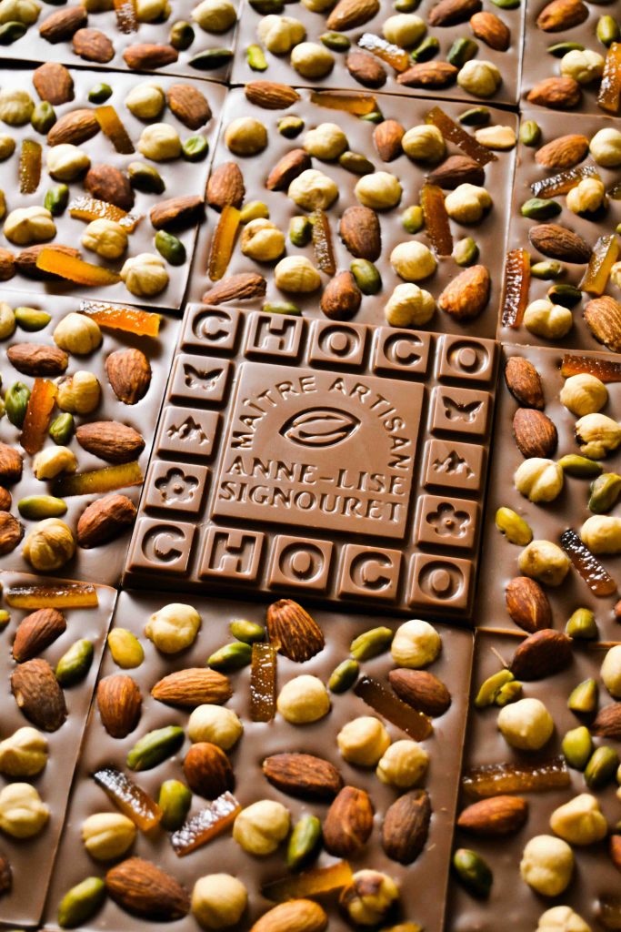 On connaissait ses boutiques de Marseille et d’Aix-en-Provence sans savoir que la magicienne qui créait ces merveilles chocolatées était une pure provençale, originaire des Hautes-Alpes. Anne-Lise Signouret est fière de ses racines. Son secret de fabrication ? Une sélection hyper rigoureuse des matières premières pour pouvoir réaliser des ganaches à la texture parfaite et des pralinés aux arômes remarquables, qu’elle enrobe ensuite dans des chocolats maison qui font sa signature tels que l’Ikabana noir à 65 % et l’Analila au lait à 42 %. Air du temps oblige, Anne-Lise vient de créer « La Sulfureuse de Dubaï », une tablette chocolatée assez dingue réalisée avec une irréprochable pâte de pistaches d’Iran. C’est déjà un de ses best-sellers ! Si le chocolat est un produit largement universel, la « Maître-Artisan » consacrée s’emploie à le rendre provençal pour les fêtes en lui associant des plantes aromatiques, des baies d’Argousier ou encore de la pâte de calisson d’Aix-en-Provence… On craque pour ses emballages sobres et chic, écoconçus évidemment pour coller à notre époque. Et surtout pour ses sapins revisités aux différents chocolats superposés. CB