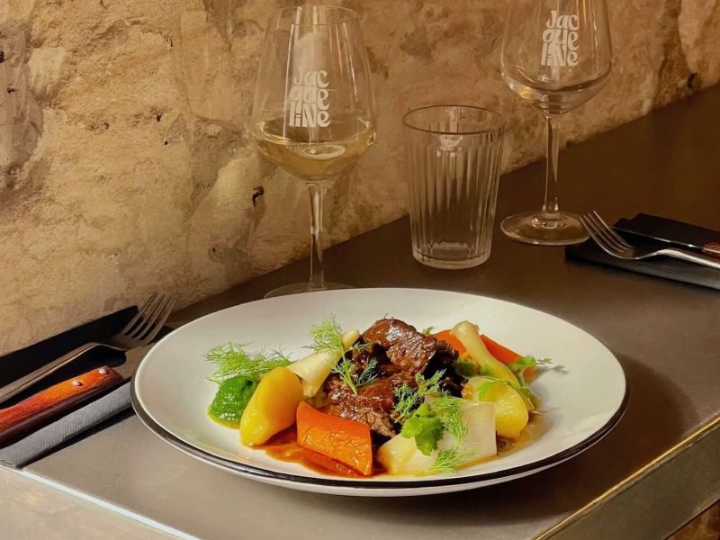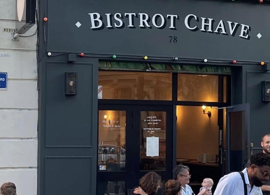 Après avoir filé un coup de main à son ami Benjamin Moro (chez À Moro), Guillaume Maugain revient à ses premières amours, la cuisine régressive, et plus précisément les plats façon bistrot. Ici, dans le 5ᵉ arrondissement, le Bistrot Chave met tout le monde d’accord. Un bistrot d’antan à l’ambiance résolument chaleureuse, où la cuisine, généreuse et goûteuse, fait la part belle aux envies de saison. Dans les verres, le Corps du Schiste, un vin blanc naturel de la Vallée de la Loire, et dans l’assiette, on débute avec des arancinis servis sur un lit de purée de courge, relevée d’un pesto de cresson. Pour la suite, la côte de cochon à partager nous fait clairement saliver, mais comment résister à un cordon bleu maison ? Les frites, cuites trois fois à l’anglaise, sont tout simplement divines. Et parce qu’il serait dommage de ne pas conclure sur une note sucrée, la mousse au chocolat, sublimée par une cuillère d’huile d’olive, une pincée de sel et un topping de pralin, vient parfaire ce moment de pur réconfort. Le Bistrot Chave fait partie de ces adresses où l’on aime venir se réconforter autour d’un bon verre de vin et d’une cuisine qui réchauffe le cœur. Testé et adopté. LP