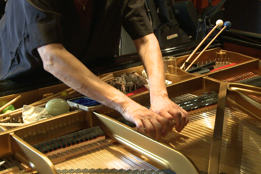 John Cage, qui fut hébergé en 1942 à New York chez Max Ernst et Peggy Guggenheim, nourrit ses œuvres musicales d’une culture européenne teintée d’expérimentations surréalistes. En 1938, préparant ses pianos sur l’exemple de son professeur Henry Cowell, il insère entre les cordes de son instrument des dés à coudre, des gommes, des pièces de métal, des morceaux de tissus et divers autres objets. Ce dispositif lui permet de modifier et d’enrichir le timbre de son piano en y ajoutant un soupçon d’imprévisibilité.