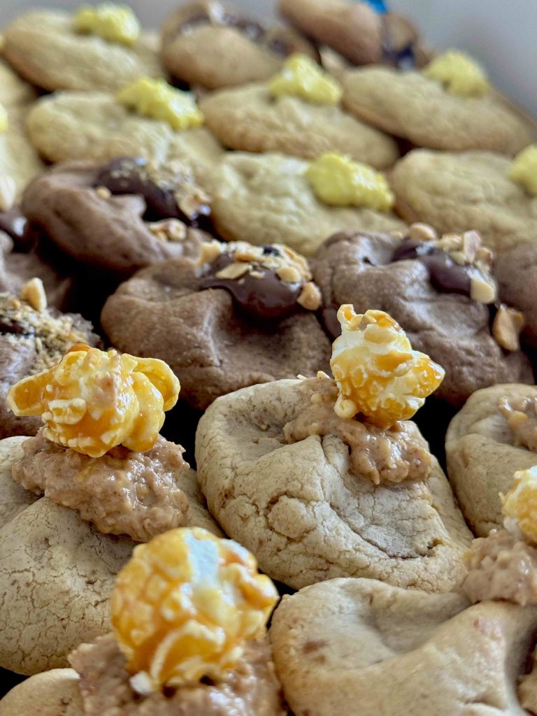 Ancienne coach sportive et professeure de fitness, Maëva troque les haltères contre les spatules pour se lancer dans la folle aventure des cookies. Originaire de La Ciotat, elle rend hommage à sa région à travers des créations aux noms chantants du Sud, comme La Bonne Mère, son best-seller : une pâte au beurre de cacahuète maison, des pépites de chocolat au lait et, pour le côté croustillant totalement addictif, des chouchous caramélisés. Parmi ses autres gourmandises, on retrouve Le Morfale, à base de pâte au spéculoos, garni de pépites de chocolat, nappé d’une onctueuse pâte de spéculoos et parsemé d’éclats de biscuits croquants, ou encore le Ça Pègue, un irrésistible sandwich de cookies au cœur fondant de chamallow grillé et de Nutella. Mais, chez Cookilovers, la gourmandise ne s’arrête pas là, cinnamon rolls, Fonkie (mi-cookie, mi-brownie)… Après ça, il ne reste plus qu’à réserver un cours de sport ! Paradoxale Maëva… LP