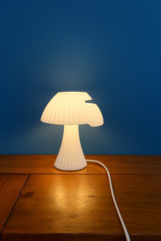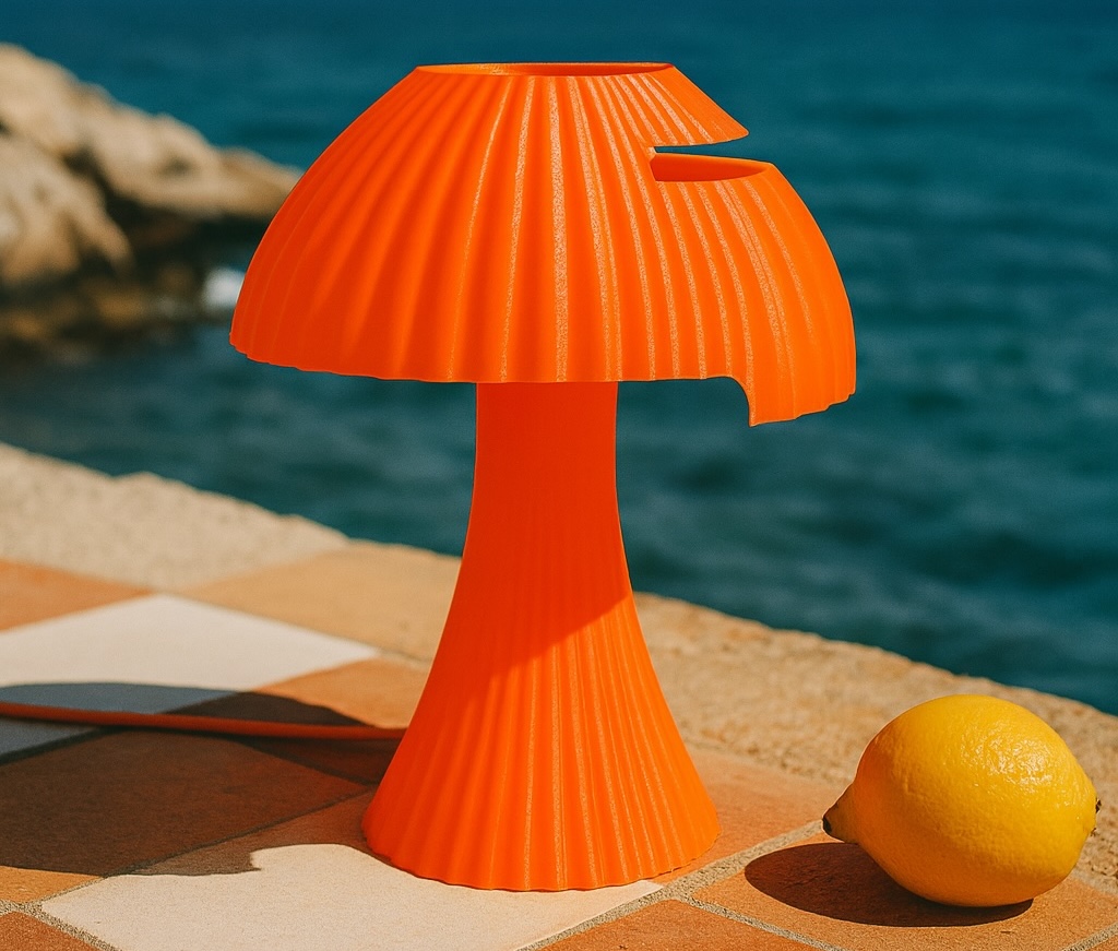 Déjà récompensée par le Fonds de dotation – Maison Mode Méditerranée pour une maroquinerie au graphisme futuriste, Laura Deweilde confirme son talent avec la création d’une lampe à poser au design bluffant, totalement apparenté au mouvement Space Age des années 1960-1970. Cet objet étonnant est le fruit d’une collaboration avec son ami Gauthier, un autre enfant du sud de la France souffrant comme elle de l’absence de lumière à Paris. Tous deux, à travers cette lampe, matérialisent cette lumière perdue. Ils la souhaitaient apaisante, vibrante et surtout chaleureuse pour retrouver la lumière de leurs étés d’enfance. Si le Khroma orange semble évident dans cette quête de chaleur, on s’étonne du choix du parme, couleur plus froide par essence mais certainement évocatrice de la lavande. Le Khroma crème mettra tout le monde d’accord par sa douceur. On adoptera ou pas cet objet haut en couleur et au design fort mais on retiendra son originalité. CB