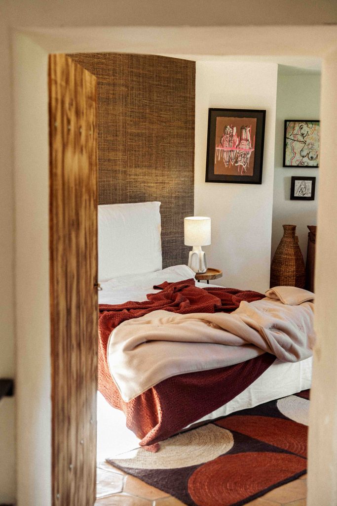 À quelques encablures des plages de Pampelonne, cette bastide de charme cultive l’art de vivre provençal dans sa version la plus authentique, chant des cigales en toile de fond. Déjà maison d’hôtes dans les années 1990, cette adresse confidentielle a retrouvé vie il y a trois ans sous la houlette de Laurence, fondatrice de l’institution tropézienne Taman Antik, aujourd’hui installée à Cogolin. Elle signe ici une décoration fidèle à son univers : sincère, inspirée et locale, avec cinq chambres, chacune pensée autour d’un thème couleur raffiné. On aime particulièrement la rose, perchée au dernier étage. Dès le petit déjeuner, c’est Jean-Marc, maître de maison et chef cuisinier passionné, qui est aux petits soins pour ses hôtes. À sa table : brioche encore chaude, confitures maison et autres douceurs de saison improvisées. Et, chaque dimanche, le jardin s’anime autour de grandes tablées conviviales où se mêlent hôtes fidèles, amis de passage et voyageurs curieux, le temps d’un généreux déjeuner, ou plus… VG