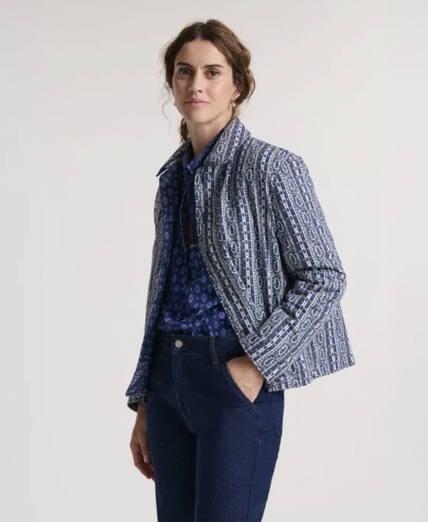 Veste Arlette Patch Merveille Marine Blanc – Souleiado