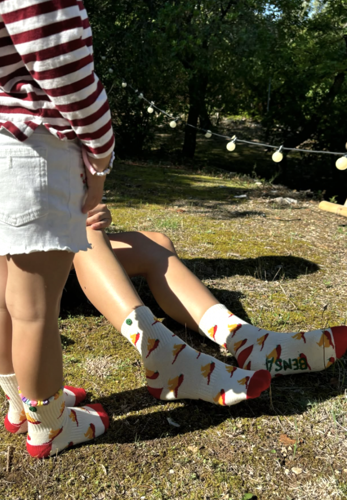 Des chaussettes fun qui s’attachent entre elles, aussi pour enfants.