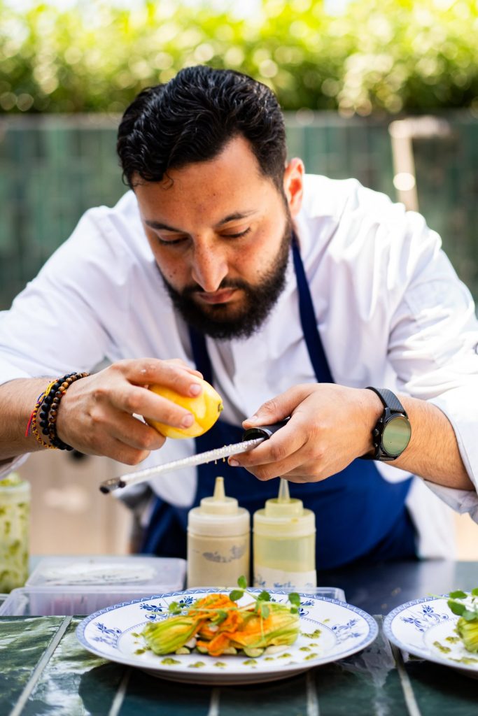 Cela fait déjà plusieurs années que ToutMa suit le chef Sidi Salhi dans ses pérégrinations gastronomiques. Après avoir découvert sa cuisine chaleureuse et colorée au sein de son ancien établissement, Hédoné, on le retrouve cette fois au Pavillon Sédille, la table du Château Beaupin. La bastide provençale, classée monument historique du xixe siècle, a tout le chic d’un hôtel particulier parisien. Le chef marseillais y rejoue l’une de ses meilleures partitions : l’exploration de sa double culture. La carte, instinctive et généreuse, met la fraîcheur au cœur de chaque proposition. On se rend au Pavillon à l’heure du déjeuner pour profiter d’un décor enchanteur, au bord de la piscine, et pour déguster ceviches de poisson, tartares de thon rouge, boureks kefta et autres shakshuka. En fin d’après-midi, c’est l’échappée belle idéale après une journée de travail bien chargée : le chef décline sa carte en petits plats à partager autour d’un cocktail. À partir du jeudi soir, place à un speakeasy raffiné avant de se délecter d’une sole meunière ou d’un poulpe relevé à la merguez et à la coriandre. En plus de (très) copieux brunchs du dimanche, le Pavillon Sédille propose aussi les « déjeuners de mamie » : un menu unique pour les grandes tablées avec un plat traditionnel, comme chez nos aïeules. Sidi Salhi, autodidacte, séduit nos palais par sa capacité à tisser un lien entre les rives nord et sud de la Méditerranée.