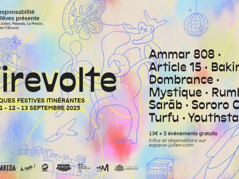 La programmation du festival comprendra également des projections (J’irai crier sur vos murs, le documentaire d’Élodie Sylvain et de Charlotte Ricco sur les collages féministes dénonçant les violences sexuelles et sexistes), des débats, des ballades urbaines et, bien sûr, des concerts. Parce que l’art de la rue n’est pas qu’une affaire de murs et qu’on ne saurait comprendre le street art sans prêter attention, de façon transversale, à la culture pop dans son ensemble.