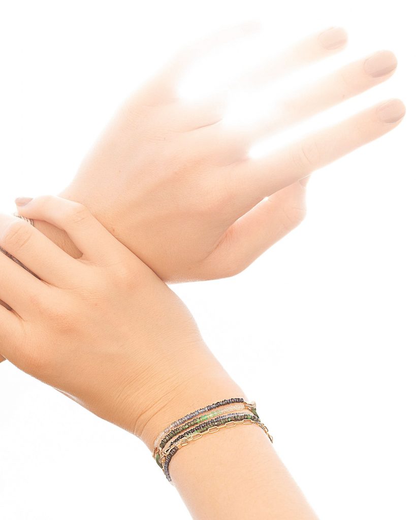 Profitons de cette rentrée ensoleillée pour prolonger l’été indien et parer notre teint hâlé de bijoux colorés ! Matthias Breve Rosso, expert joaillier, vient de donner naissance à Nonza (du nom d’un village de Haute-Corse), des bracelets de pierres précieuses uniques et solaires réalisés en France. On choisit les pierres pour leur lumière, puis un lien, en fils de coton colorés ou une chaîne dorée et, enfin, un reflet, d’or rose ou d’argent, pour scintiller sur les plages. Les perles, taillées en Inde, sont sélectionnées pour leur singularité et leur éclat. Que vous soyez plutôt « Saphir », d’un bleu océan profond et hypnotique, « Émeraude », verdoyant signe de bon augure, ou « Rubis », rosée comme un lever de soleil, vous craquerez comme nous sur Nonza pour son originalité et son jeu de personnalisation ludique. CG