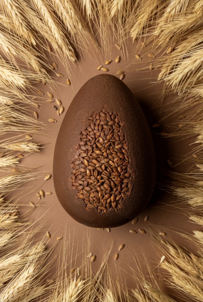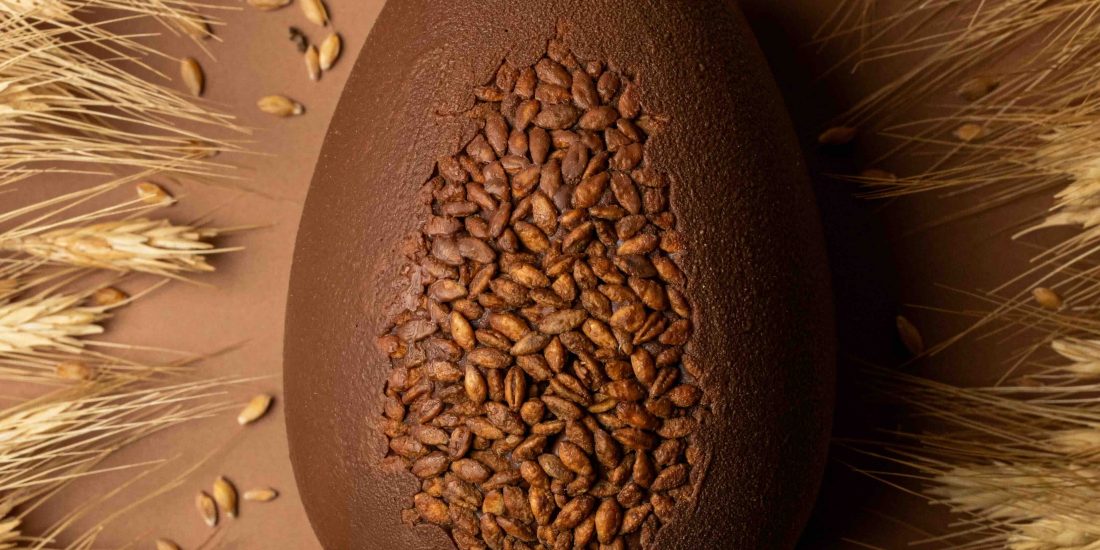 Le chef pâtissierÉric Raynal, lauréat 2020 de la sélection « Passion Dessert » du Guide Michelin, dévoile en partenariat avec Valrhona un véritable objet de design comestible de 15 cm. Rendant hommage au blé et au terroir provençal, cette création renferme 300 g de gourmandise, avec un cœur caramel praliné à l’épeautre, à croquer à pleines dents. Un délice ultra réconfortant, qui s’impose comme une pièce signature au centre de la table, invitant au partage et séduisant autant les amateurs de chocolat que les amoureux des saveurs locales.