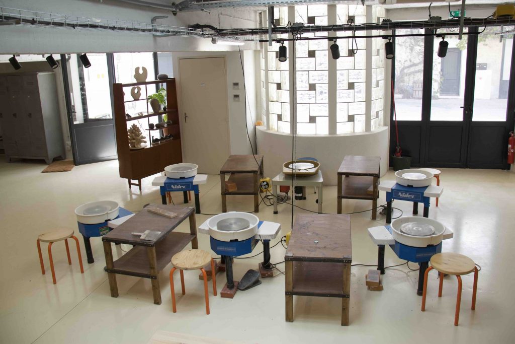 Prestations : cours d’initiation, cours techniques, accompagnement artistique, Sociabilité : Apéros céramique, Teambuilding, privatisation